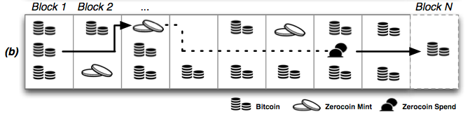 "Zerocoins are random claims on bitcoins that breaks the transaction chain"