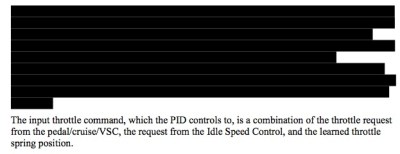 What you probably didn’t hear too much about (except maybe in passing) was that NASA and NHTSA spent nearly a year poring through the Toyota engine control module code to figure out if software could be at fault. Their report, issued in February of this year, basically said the software was ok. Or maybe it didn’t. It’s not really clear what it said, because major portions — particularly of the software evaluation section — were redacted.