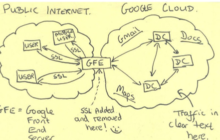 Note that Google (and possibly Yahoo as well) used leased lines for their inter-datacenter connections, so they thought they had reason to trust their security… If I understand correctly, ISPs were actually breaking contractual promises when they let the NSA snoop on these lines.
